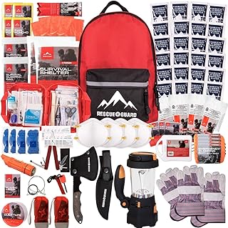 Rescue Guard; First Aid Kit, Hurricane Kit, Disaster Kit or Earthquake Kit; Emergency Survival Kit, Bug Out Bag Supplies, Survival Gear for 12 Days, 6 Days for 2, 72 Hours 4 People (Survival Pack)