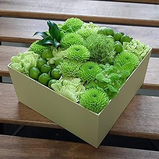生花 ボックスフラワー ギフト 誕生日 バリエーション豊富で選べるBOXカラー 敬老の日 メッセージ カード付き リラックス フラワー 結婚祝い お見舞 送別 新築祝い 還暦 引き出物 ウエディング 御祝い 卒業 入学 出産 お供え (BOXカラー【水色】, グリーン)