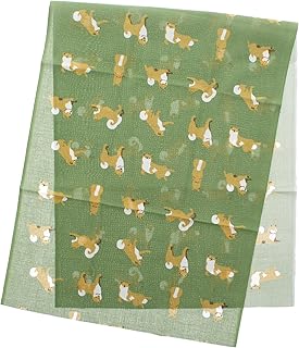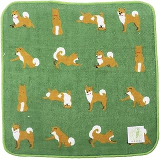 柴田さんの住む東京わさび町[ミニタオル]片面ガーゼハンカチタオル/しばたさん 柴犬【グリーン 】