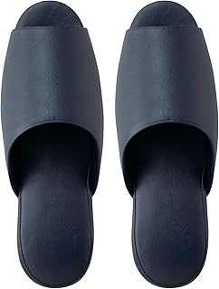 TOKYO SLIPPER 抗菌レザー調 ビニールスリッパ 抗菌加工済み 水拭き可 前閉じ 厚底 スリッパ 滑り止め付き 男女兼用 ゲストスリッパ 業務用 来客用にもお薦め (ネイビー, フリーサイズ(23.0~26.0cm))