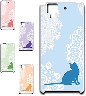 arrows NX F-01J スマホケース ハードケース カバー シルエット 猫 花柄 [デザインE/ブルー] 青色 TK-652E アローズ エヌエックス 富士通 docomo ドコモ
