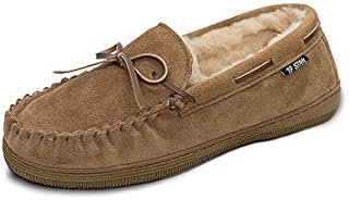 メンズ 本革 スエードレザー フェイクファー 裏地付き モカシン スリッパ クラシック フラット スリップオン 屋内 屋外 モカシン メンズ