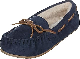 ILLUDE レディース モカシンスリッパ ビーガンスエード フェイクファー裏地 屋内&屋外 モカシン スリップオン ローファー モカシン シューズ