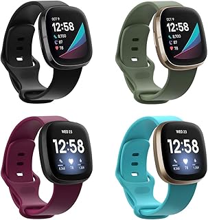 FAKIDOM Sense バンド Fitbit Versa 3 & Fitbit Sense対応 レディース メンズ ソフトTPUスポーツストラップ 交換用リストバンド アクセサリー Fitbit Versa 3/Sense Watch用 4個パック