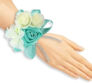 Zilue ウェディングガール ブライズメイド リストコサージュ 手 フラワーパーティー プロム アクセサリー ティファニーブルー 4個パック