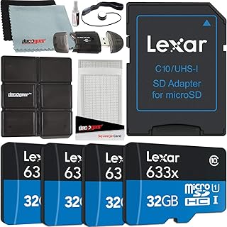 Lexar 4個パック 高性能633x 32GB (合計128GB) MicroSDHC UHS-I メモリーカード SDアダプター付き LSDMI32GBBNL633A バンドル デコギアSDリーダー&ストレージケース + マイクロファイバークロス&アクセサリー