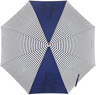 手描き風のネコ×ボーダー柄 60cm ジャンプ傘 (花紺)