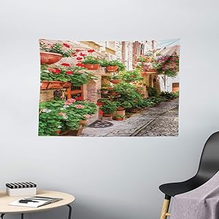 (150cm W By 100cm L, Multi 6) - Ambesonne Tuscan Decor Collection, Street View of a Small Renaissance Town with Floral Porches and Rock Houses Mediterranean Art, Bedroom Living Room Dorm Wall Hanging Tapestry, 150cm X 100cm , Multi