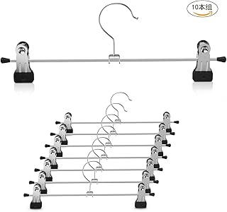 DOIOWN スカートハンガー ズボンハンガー 10本組 ハンガー 省スペース 連結 すべらない ステンレス クローゼット 収納 移動式クリップ付き