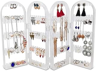 dilib ピアス スタンド 折りたたみ イヤリング 収納 大容量 省スペース アクセサリー ディスプレイ 展示 コンパクト ジュエリー 収納棚 (4扉・白)